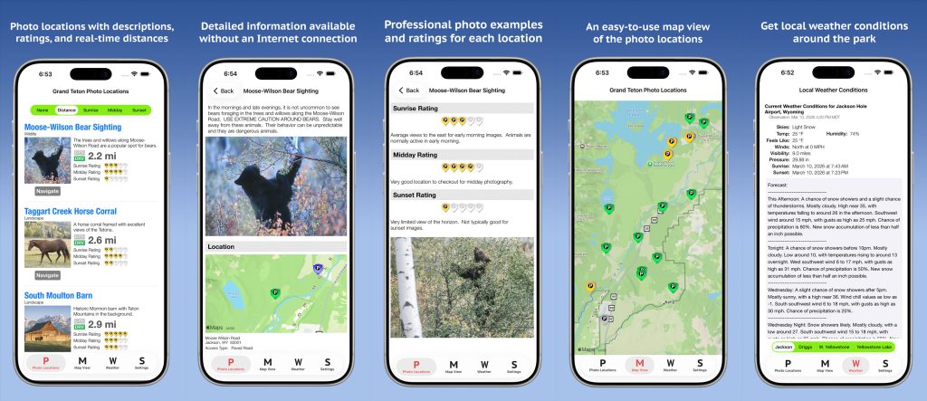 Find the best photographic locations in selected national parks